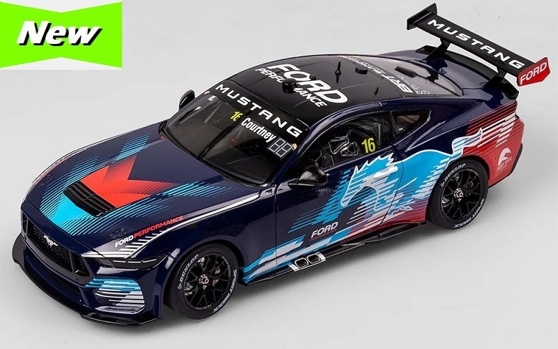 Blanchard Racing Team (BRT) Ford Performance #16 Ford Mustang GT. With BRT/Snowy River Racing driver James Courtney behind the wheel, and former Haas Formula 1 Team Principal Guenther Steiner in the passenger seat, #16 cut demonstration laps on the streets as part of the 2024 Repco Adelaide Motorsport Festival. Stylish two-tone blue and red ‘glitch’ livery, with Ford Performance Branding. High quality die-cast model, with opening parts bonnet and doors. Detailed racing cockpit, engine bay, and chassis. Limited Edition of 156. FREE SHIPPING TO NZ ADDRESSES.