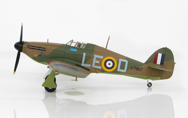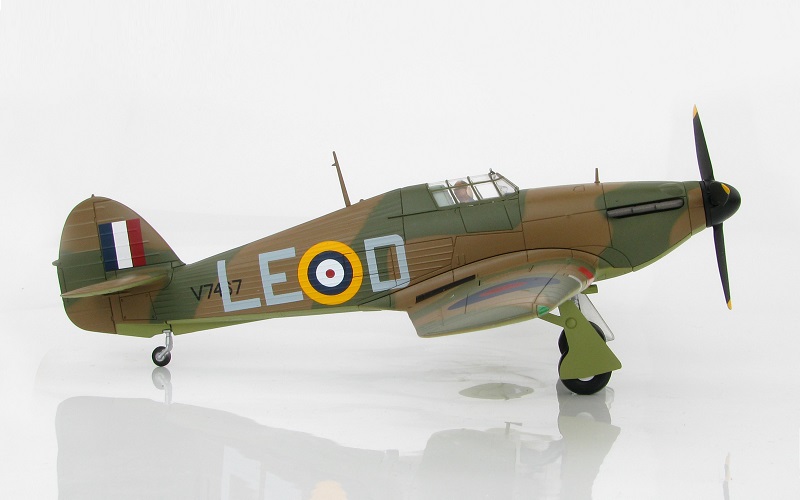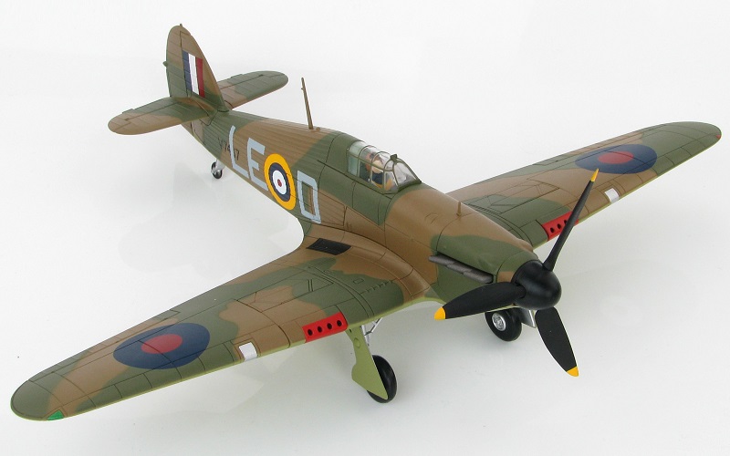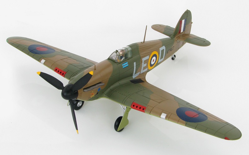 Hawker Hurricane Mark I LE-D of Squadron Leader Douglas Bader, No. 242 (Canadian) Squadron Coltishall, Sept 1940. Metal prop, canopy slides open, fully retractable landing gear, pilot can be removed. Comes with display stand. A classic!