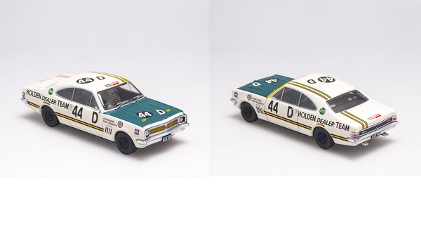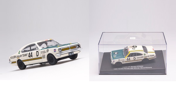 Colin Bond and Tony Roberts Holden Dealer Team HT Monaro #44D. 1969 Bathurst (Hardie-Ferodo 500) winners. Approx 100mm x 40mm x 30mm(4" x 1.5" x 1.25"). Comes in an acrylic display case.